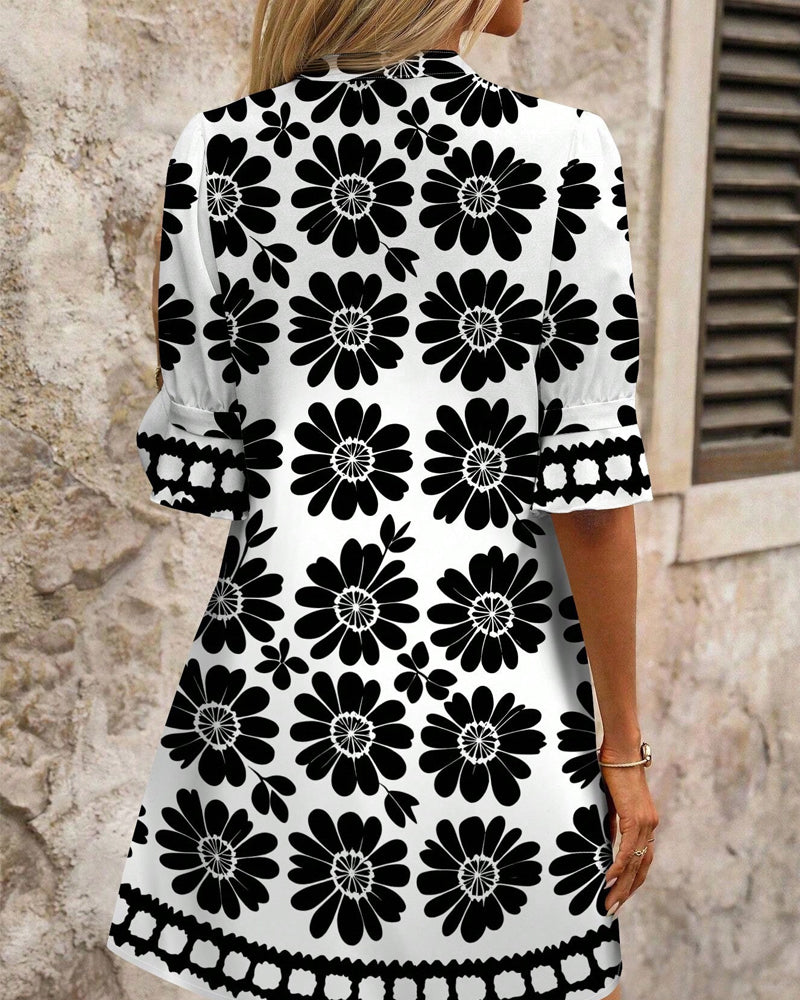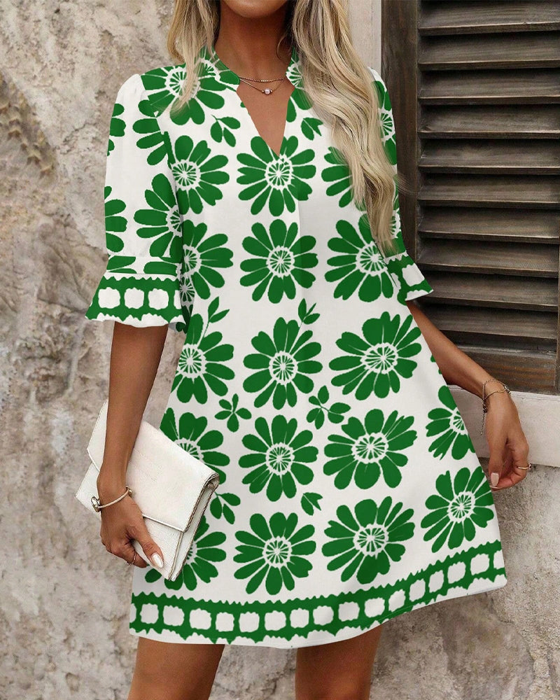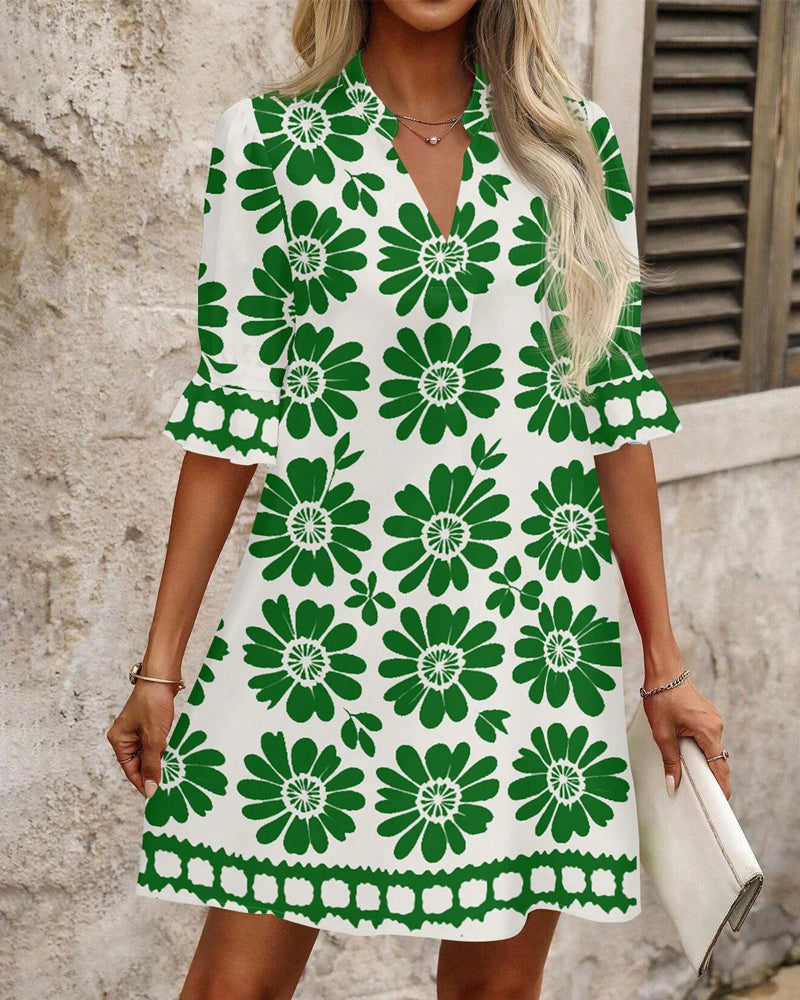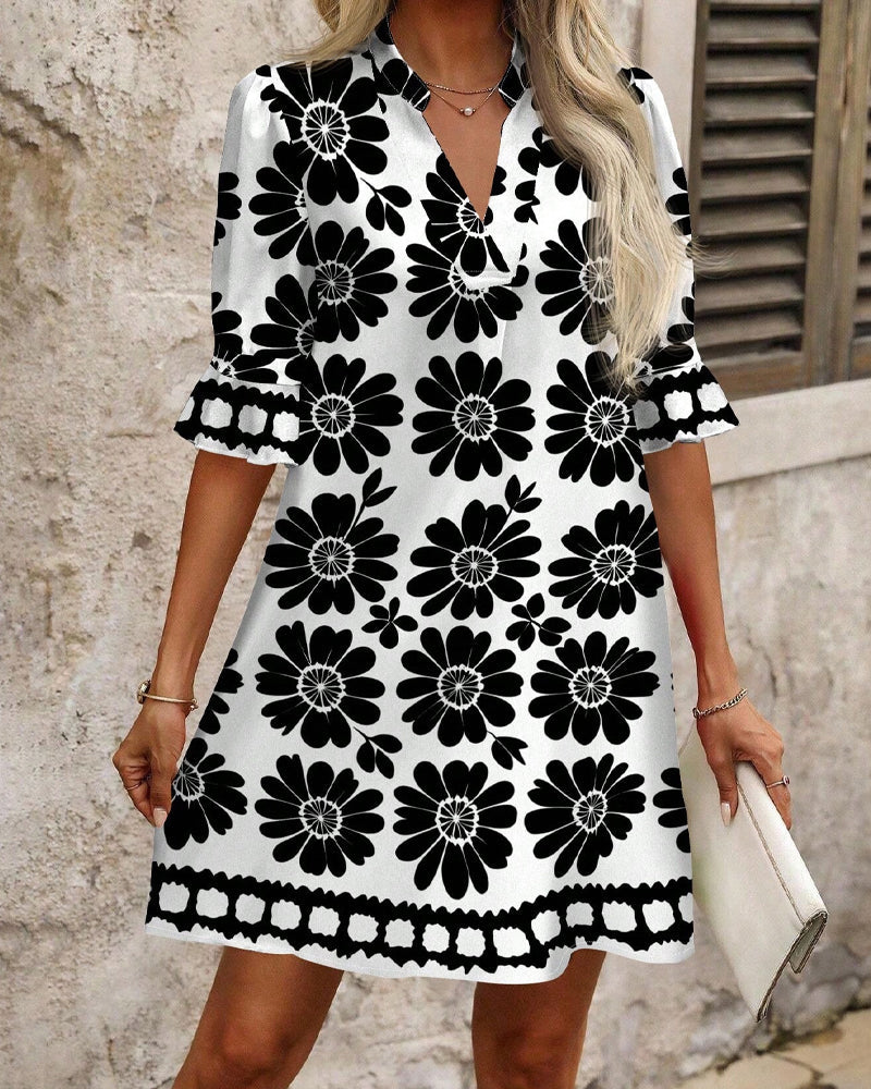 Laat je stijl moeiteloos spreken met deze casual shift-jurk, gemaakt van een zachte katoenmix die comfortabel aanvoelt op de huid. De jurk valt tot op de knie en heeft een elegante V-hals die een subtiele vrouwelijke touch geeft. Het bloemendessin zorgt voor een frisse, natuurlijke uitstraling, perfect voor de lente, zomer en het vroege najaar.
