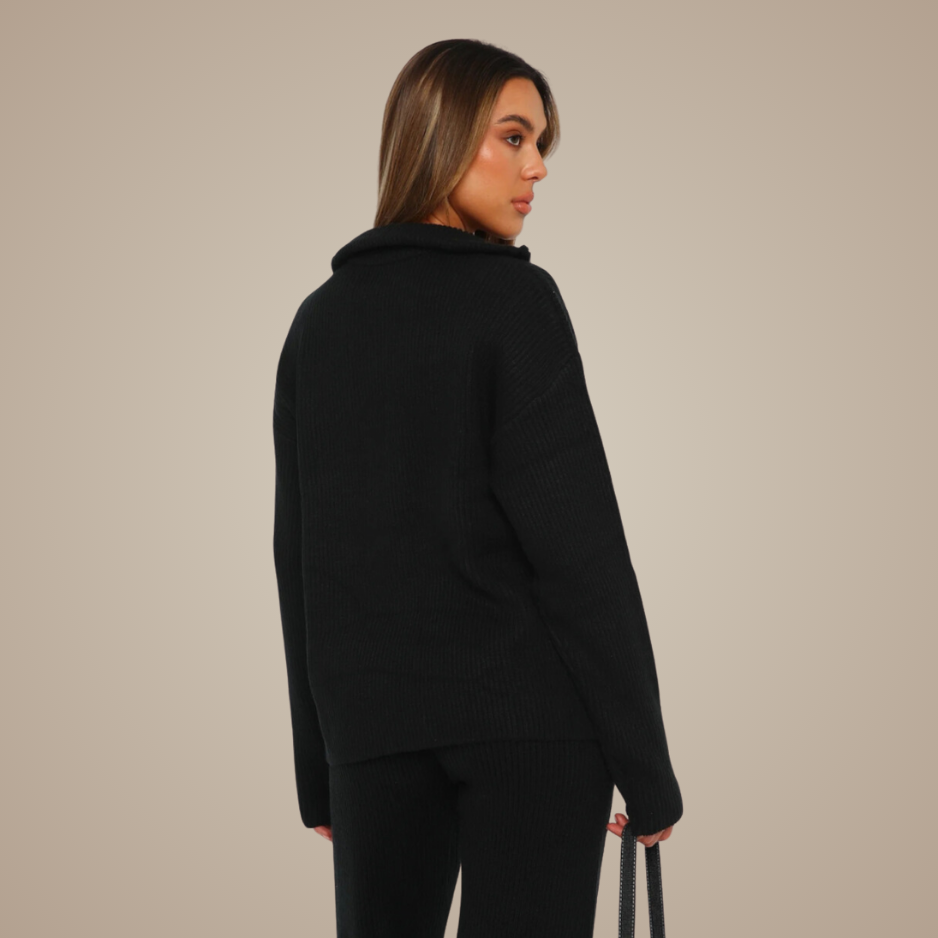 Een stijlvolle half-zip top gecombineerd met relaxte joggers voor een moeiteloos trendy uitstraling.