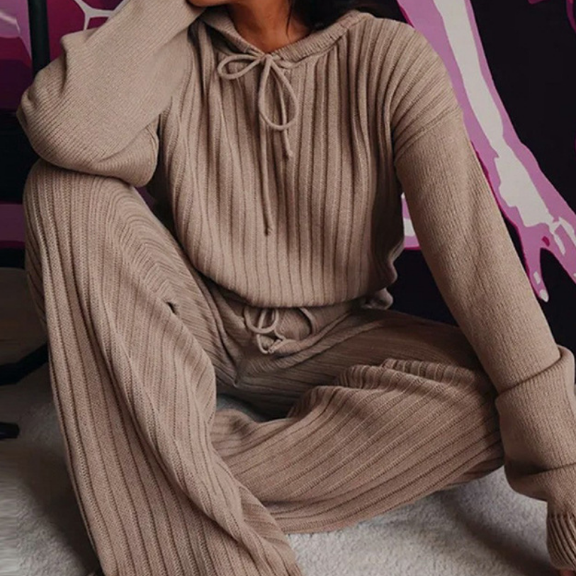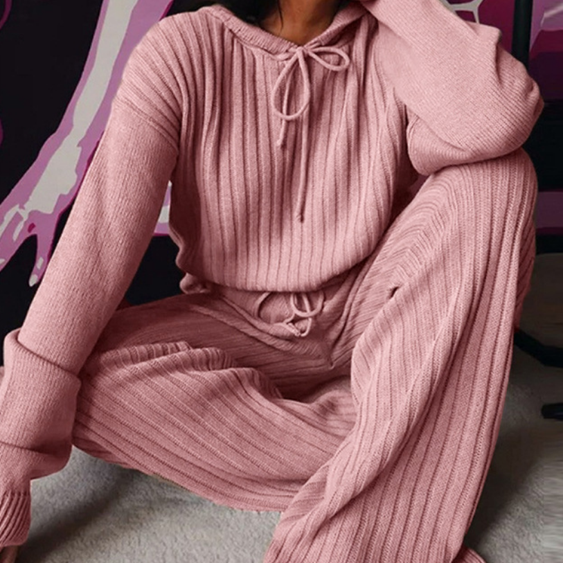 Ervaar de perfecte mix van stijl en comfort met de Lora Set—een zachte, hooded pyjamaset die ideaal is voor ontspannen avonden, rustige ochtenden en self-care momenten. Zeg vaarwel tegen stijve, ongemakkelijke loungewear en omhul jezelf met pure zachtheid.
