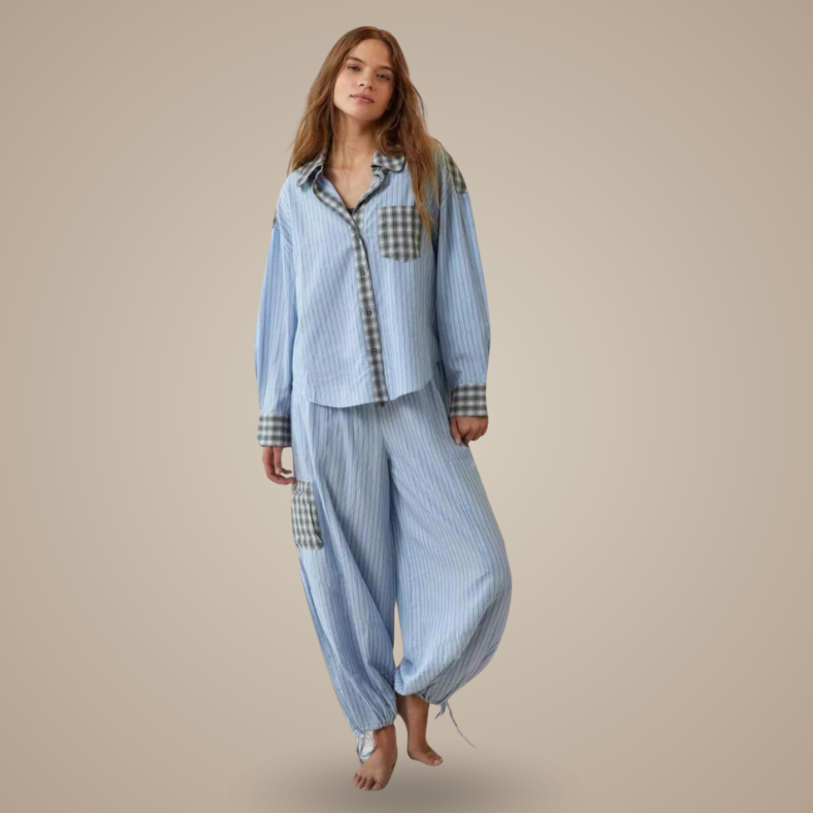 Moe van onrustige nachten in oncomfortabele nachtkleding? De Slaap Set is ontworpen voor vrouwen die geen concessies doen op het gebied van comfort en stijl. Deze luxueuze set, gemaakt van ultra-zachte, ademende stof, houdt je warm zonder te zwaar aan te voelen—perfect om te ontspannen na een lange dag of te genieten van langzame, knusse ochtenden.